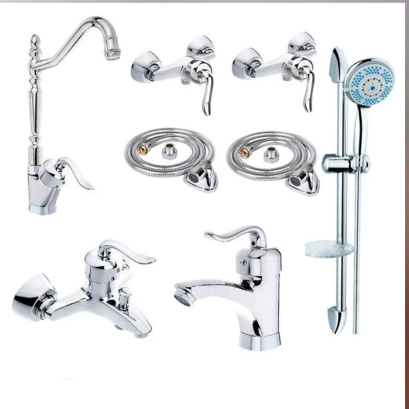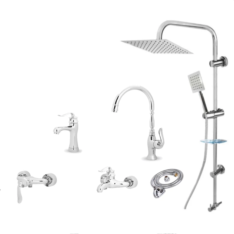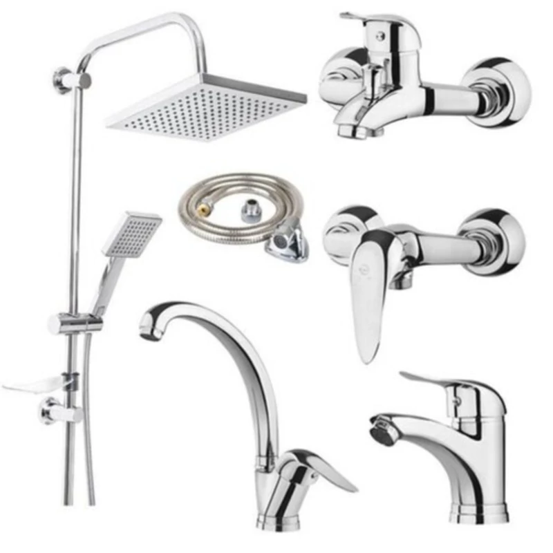 ست 6 تایی شیرآلات هلن کروم تنه سنگین با علم دوش دوکاره و شیلنگ توالت