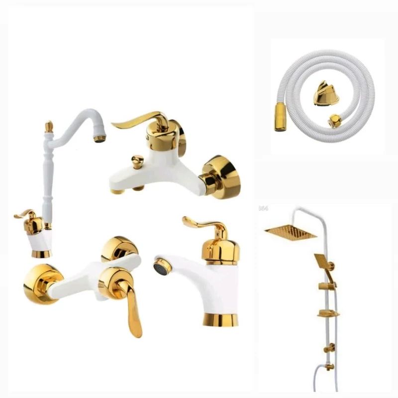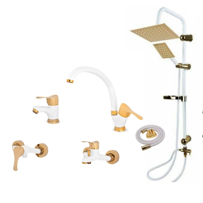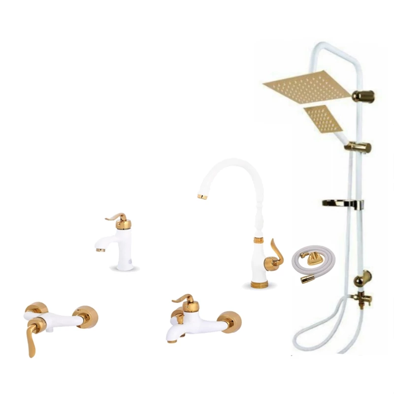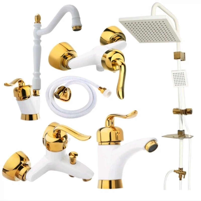 ست شیرآلات سفید طلا مدل قاجاری برند ایران گروه همراه با علم دوش دوکاره