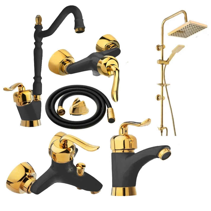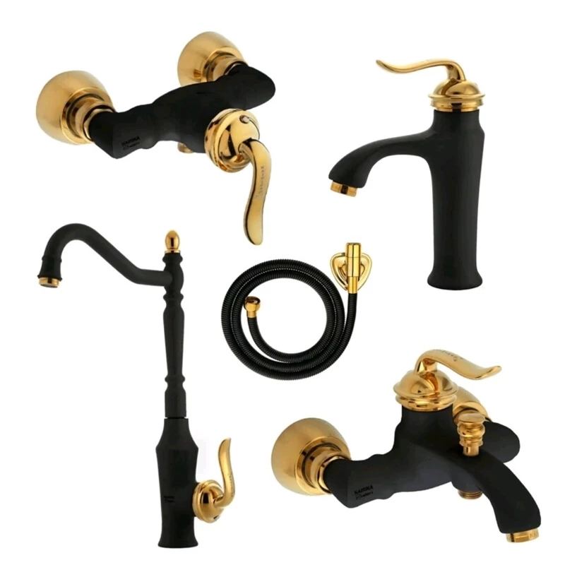 ست 5 تایی شیرآلات ایران گروه مدل هلن مشکی طلایی