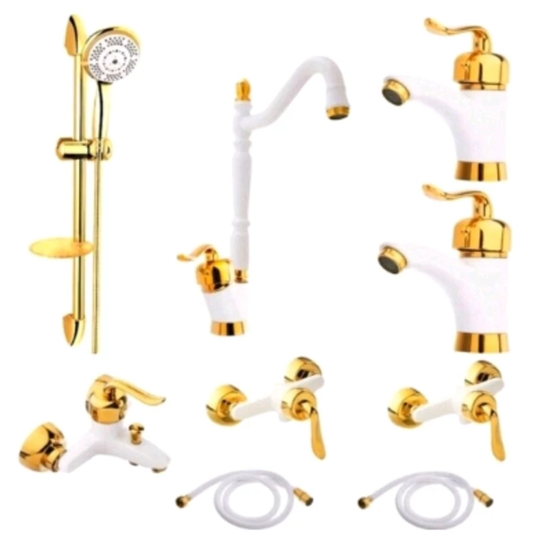 ست 9عددی شیرآلات سفید طلا مدل قاجاری برند ایران گروه