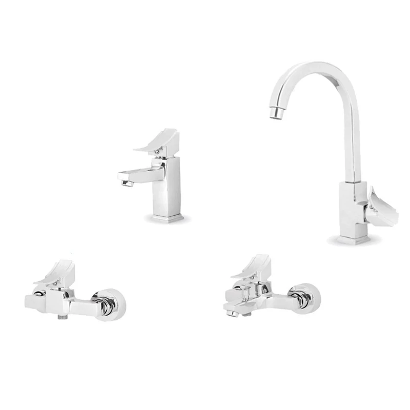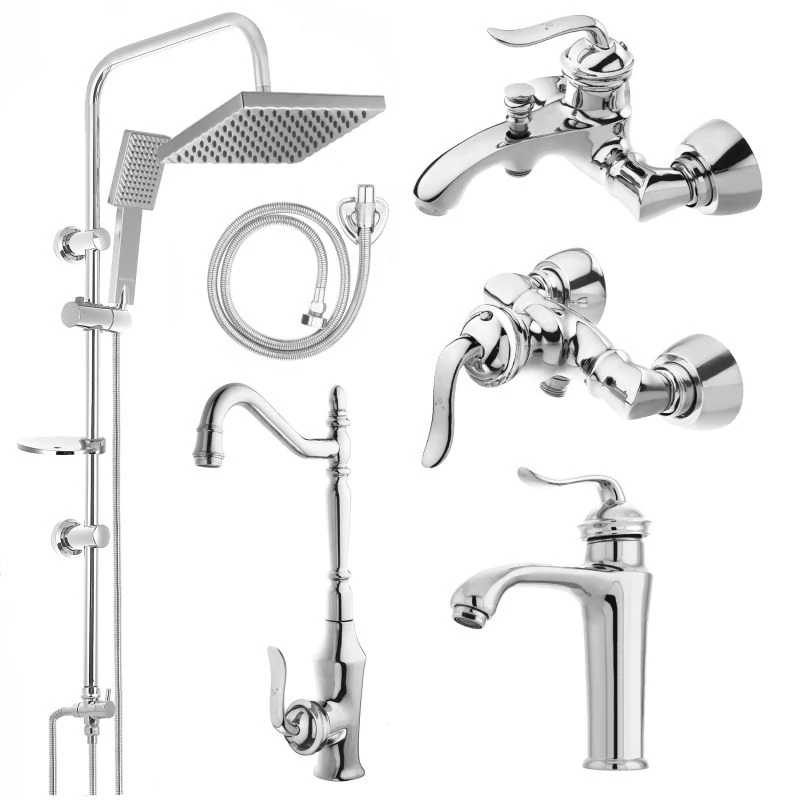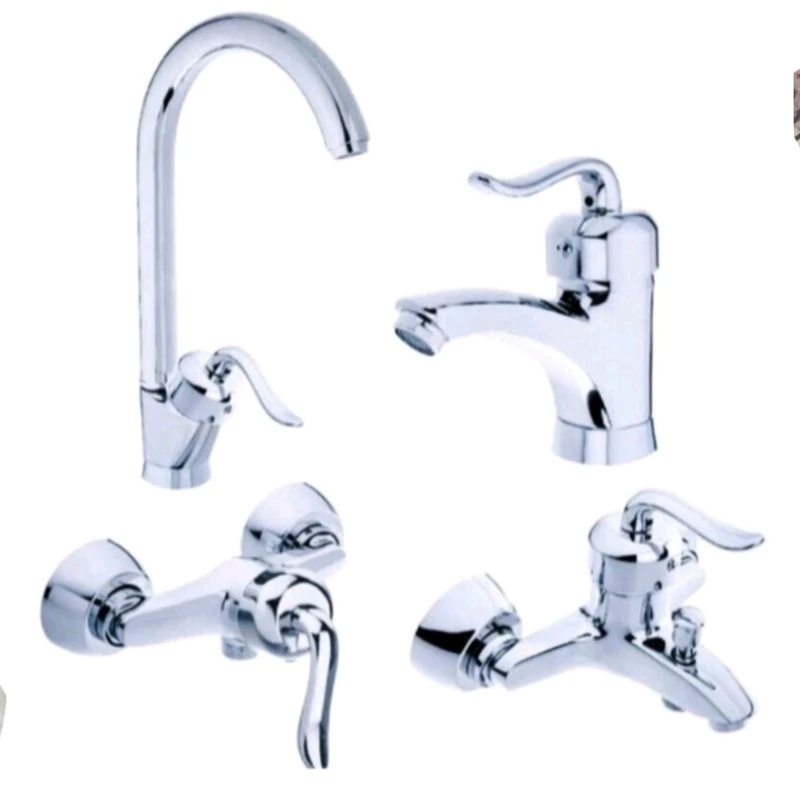ست 4 تیکه شیرآلات قاجاری کروم با شیر روشویی پایه بلند ایران گروه