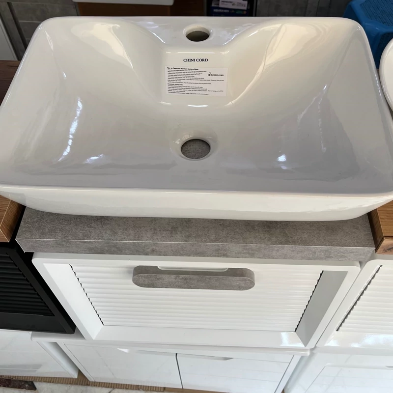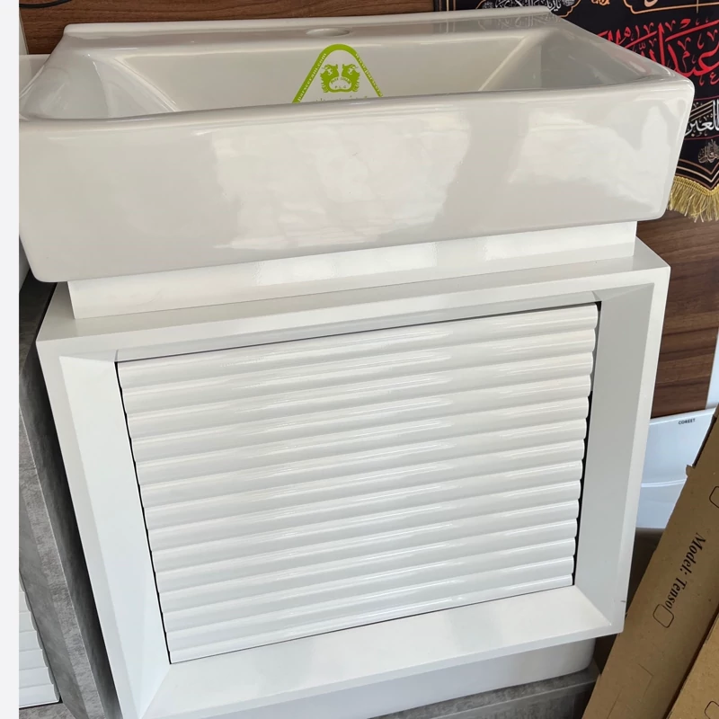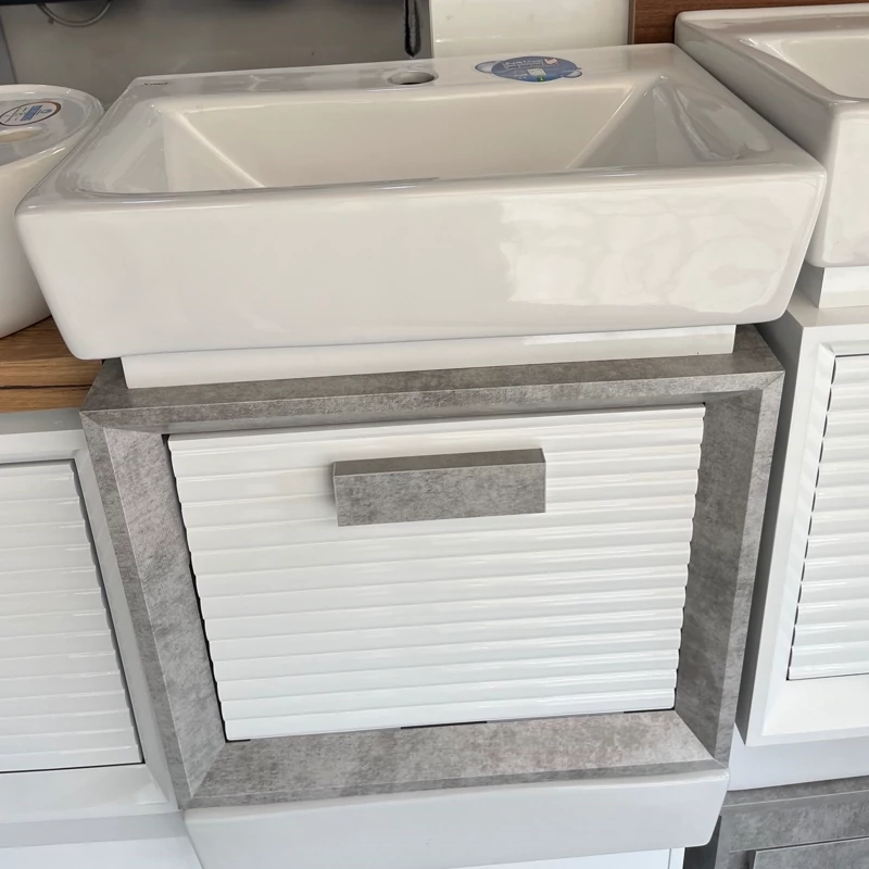 روشویی کابینتی pvc سایز 50 در36 سفید پتینه با سنگ چینی کرد (پس کرایه)