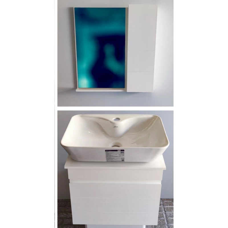 فول ست روشویی کابینتی آندره سفید به همراه آینه و باکس ( طول 45 عرض 25) (پس کرایه)