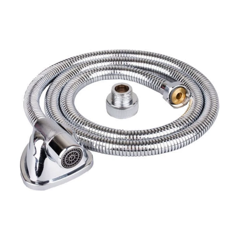 ست 6 تیکه شیرآلات قاجاری کروم به همراه شیلنگ توالت و علم دوش دوکاره شیپوری(پس کرایه)