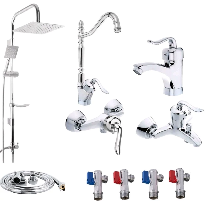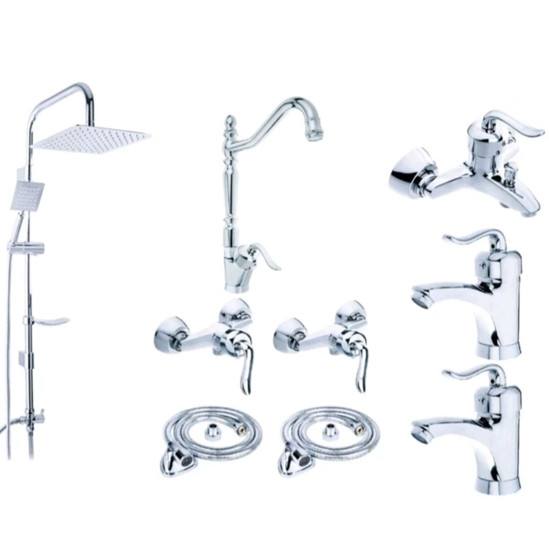 ست 10 تایی شیرآلات قاجاری کروم با علم دوش دوکاره مربعی(پس کرایه)
