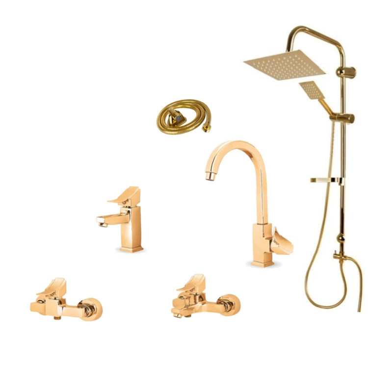ست شیرآلات فلت رز طلایی با علم دوش دو کاره و شلنگ توالت شش تکه ایران گروه