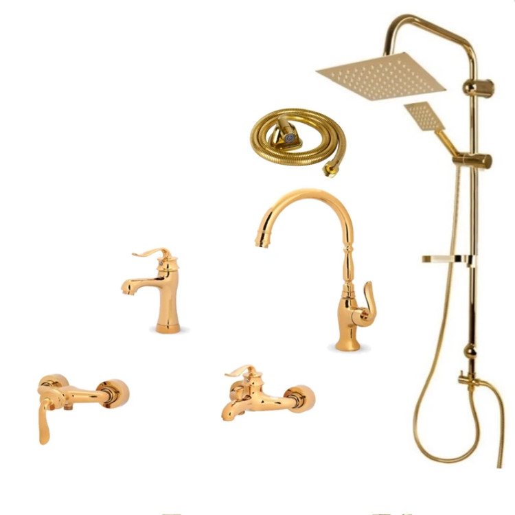 ست شیرآلات سزار طلایی با علم دوش دو کاره و شلنگ توالت شش تکه ایران گروه