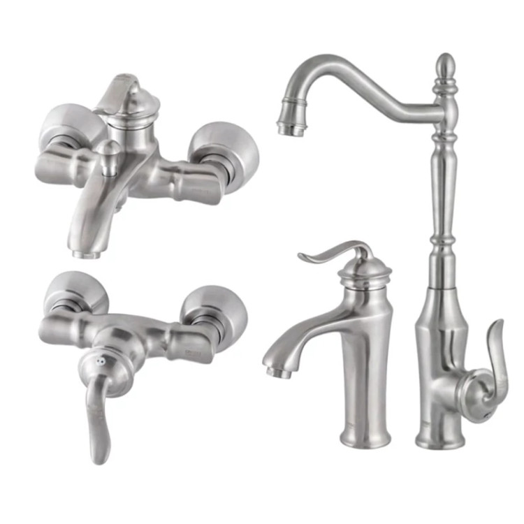 شامل : ۱عدد شیر ظرفشویی - ۱عدد شیر روشویی- ۱عدد شیر دوش - ۱عدد شیر آفتابه