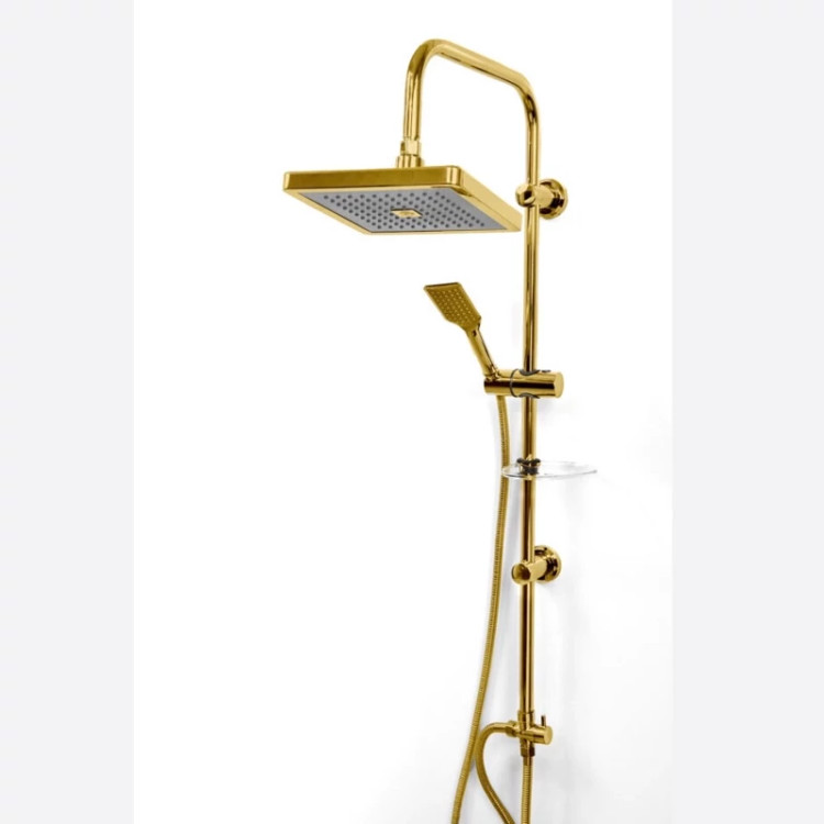علم دوش دوکاره تمام استیل با سردوش رسوبگیر ضد رسوب طلایی