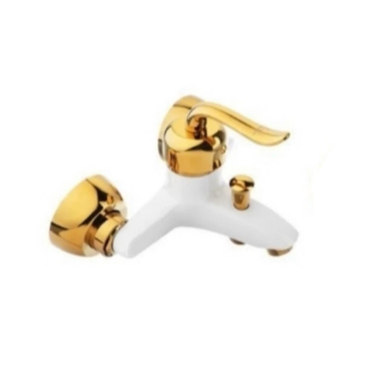 ست 10 تایی شیرآلات قاجاری سفید طلایی با علم دوش دوکاره مربع طلایی و شیلنگ توالت(پس کرایه)