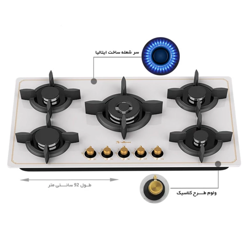 تعداد شعله : دارای 5 شعله با تجهیزات گازسوز ( پلوپز وسط )