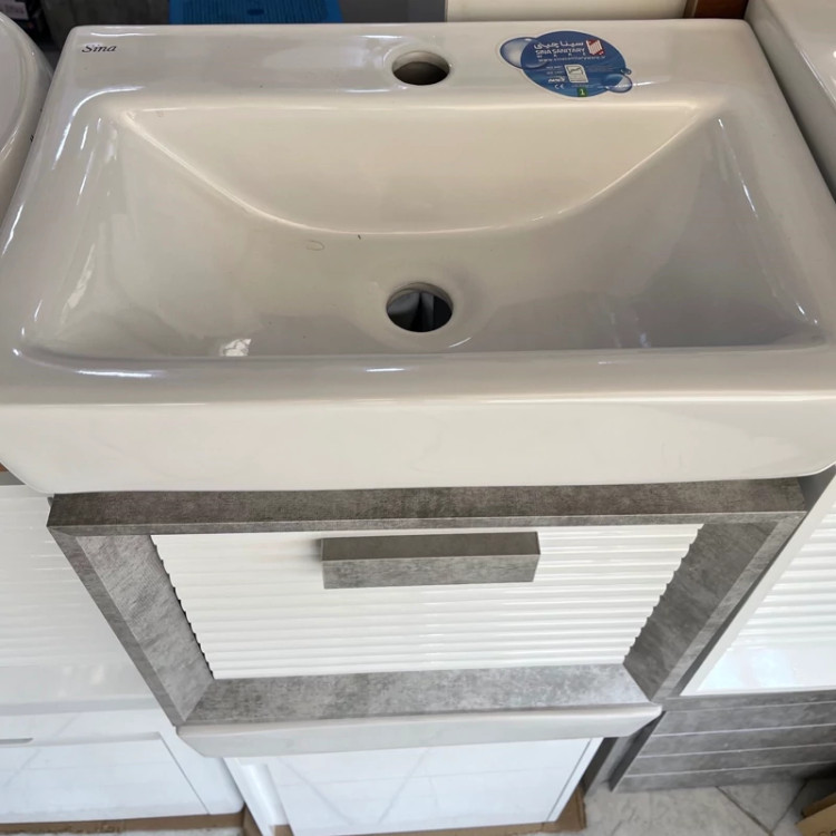 روشویی کابینتی pvc سفید پتینه سایز 47 در 31 با سنگ سینا چینی (پس کرایه)